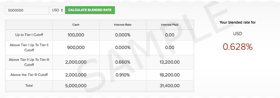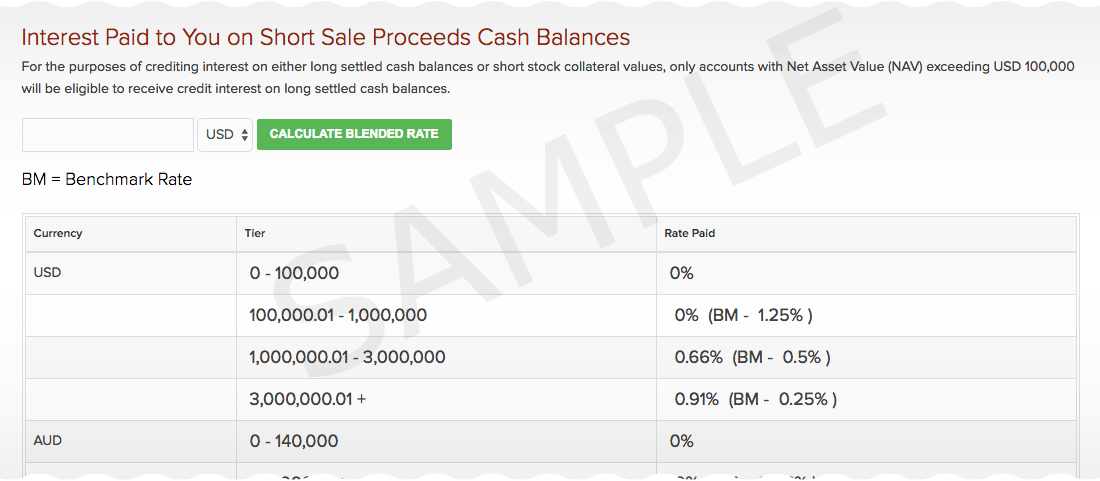 В случае ставок по денежным остаткам, равным залоговым суммам шортинга акций, только счета с NAV, превышающей USD 100 000, имеют право на получение таких кредитных процентов.